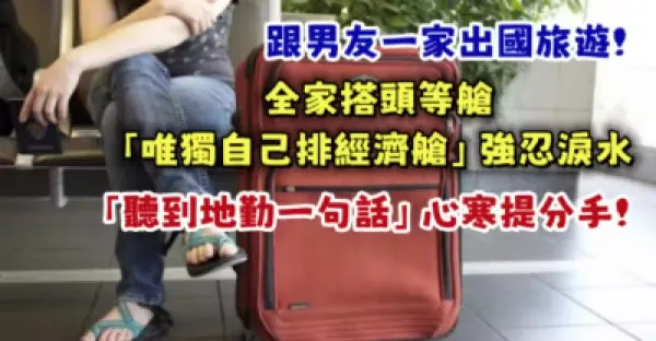 跟男友一家出國旅遊!全家搭頭等艙「唯獨自己排經濟艙」 強忍淚水「聽到地勤一句話」心寒提分手~