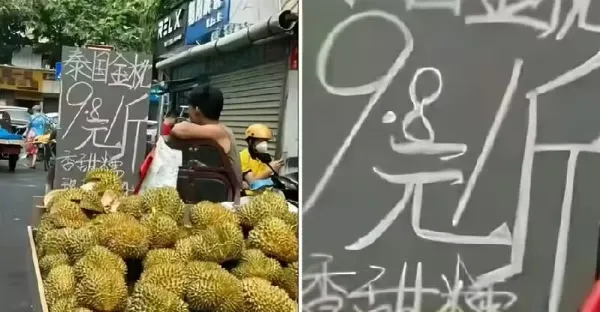 路邊榴槤車「標價9.8/公斤」當即要買,老公指著「這1處」拉我走:不看仔細點很容易上當!