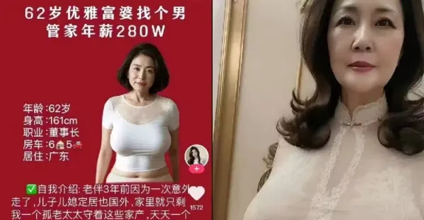 62 歲優雅富婆找男管家,提供千萬年薪!