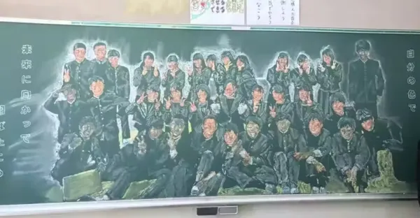 老師為了送學生畢業禮物「花7.5小時畫黑板」 隔天「全班33人發現自己在黑板上」