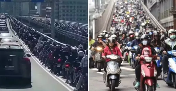 高峰期遇「機車族」過橋!車流似瀑布卻有「一細節」引熱議:台灣人素質一流!