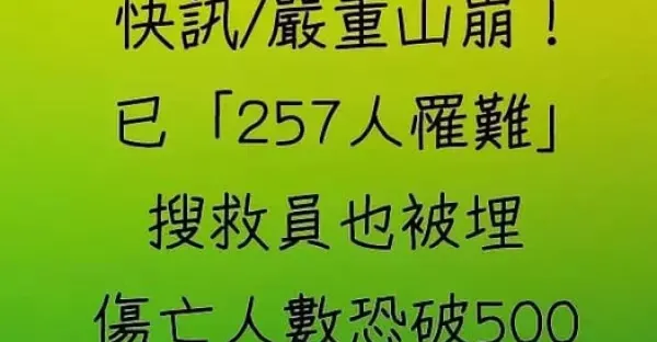 快訊/嚴重山崩!已「257人罹難」搜救員也被埋 傷亡人數恐破500!