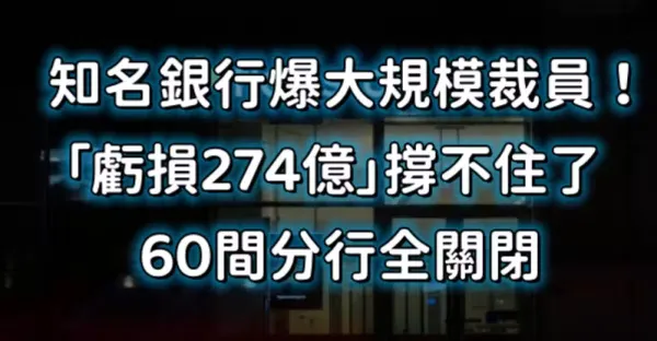 快訊 / 知名銀行爆大規模裁員!「虧損274億」撐不住了 60間分行全關閉