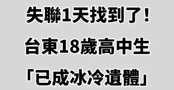 快訊/失聯1天找到了!台東18歲高中生「已成冰冷遺體」死在秘境