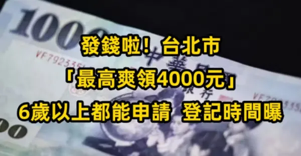 發錢啦!台北市「最高爽領4000元」6歲以上都能申請 登記時間曝