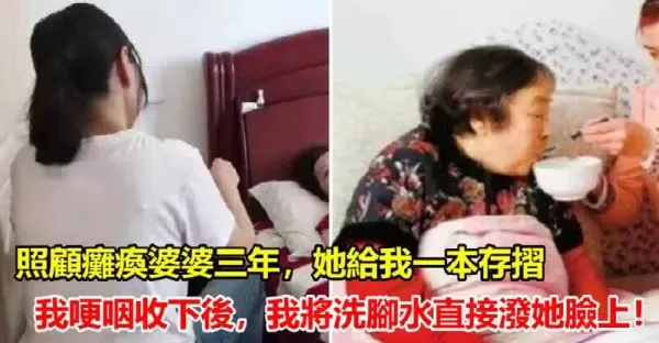 照顧癱瘓婆婆三年,她給我一本存摺我哽咽收下後,我將洗腳水直接潑她臉上!
