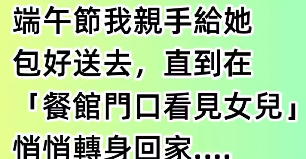 我今年69歲,女兒從小就喜歡吃粽子,端午節我親手給她包好送去,直到在「餐館門口看見女兒」悄悄轉身回家....所謂的父女親情都是假的.