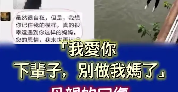 「我愛你, 下輩子,別再做我媽了!」母親的回覆讓高三男生縱身跳下河