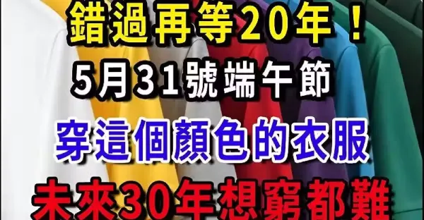 錯過再等20年!今年端午不一般,5月31號一定要穿「這個顏色」的衣服,未來30年想窮都難!