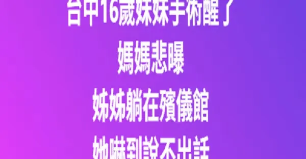台中16歲妹妹手術醒了!媽媽悲曝「姐姐躺在殯儀館」她嚇到說不出話