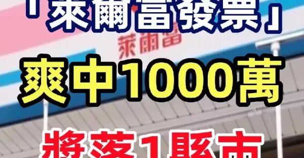 幸運兒開獎!「萊爾富發票」爽中1000萬,獎落1縣市