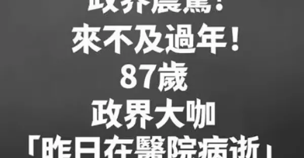 政界震驚!來不及過年!87歲政界大咖 「昨日在醫院病逝」