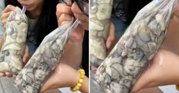 情侶蹲路邊「爽喝特別飲料」路人好奇圍觀!靠近一看「袋子裡內容物」當場傻住:店家太會玩了