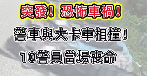 突發!恐怖車禍! 警車與大卡車相撞 10警員當場喪命