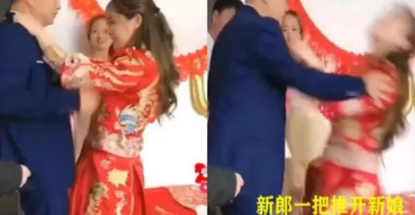 新娘跳舞多姿迎愛人,新郎嫌太姣「一掌推飛」:不娶了!