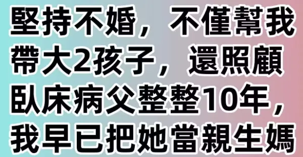 母親過世後,阿姨跟父親「同居相伴18年」堅持不婚,不僅幫我帶大2孩子,還照顧臥床病父整整10年,我早已把她當親生媽媽,她卻在臨終前「做了一件事」...頓時淚如雨下!