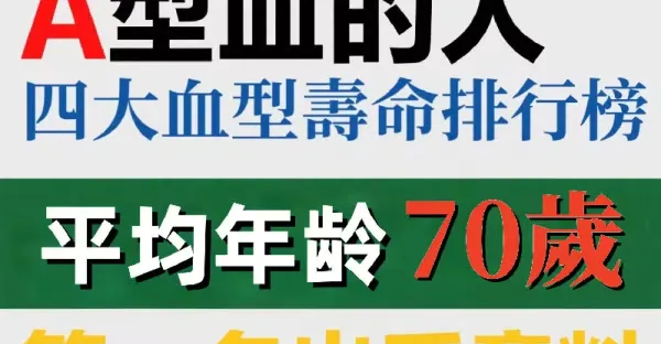 小心A型血的人 四大血型壽命排行榜 AB型血平均年齡70歲 第一名出乎意料