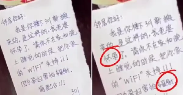 鄰居貼紙「家有孕婦,請打關無線網絡」,隔天她超霸氣「貼紙回應」,嚇到對方「不敢再提」