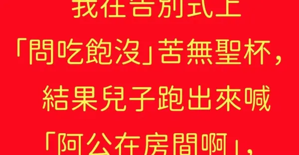 爸爸最近走了,我在告別式上「問吃飽沒」苦無聖杯,結果兒子跑出來喊「阿公在房間啊」,轉頭一看我立刻淚崩!