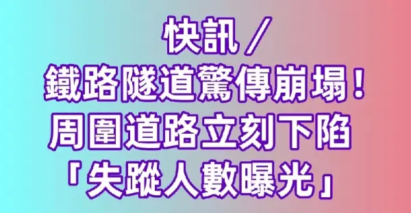 快訊/鐵路隧道驚傳崩塌!周圍道路立刻下陷「失蹤人數曝光」