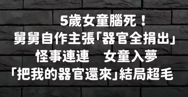 5歲女童腦死!舅舅自作主張「器官全捐出」怪事連連 女童入夢「把我的器官還來」結局超毛