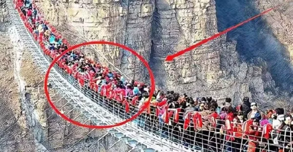 玻璃橋突然「碎裂」,大量遊客嚇到腿腳發軟,鏡頭記錄了驚險過程