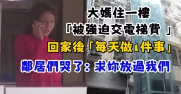 大媽住一樓「被強迫交電梯費 」 回家後「每天做1件事」鄰居們哭了:求你放過我們吧!
