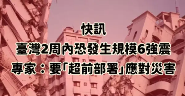 快訊/台灣2周內恐發生規模6強震 專家:要「超前部署」應對災害