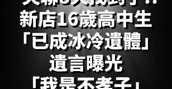 失聯8天找到了!新店16歲高中生「已成冰冷遺體」...遺言曝光「我是不孝子」