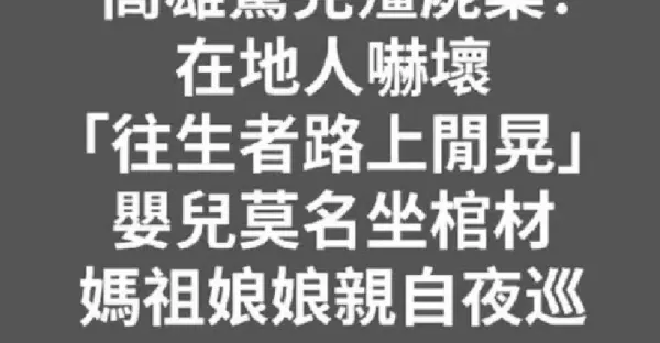 高雄殭屍奇案!在地人驚曝「往生者路上閒晃」嬰兒莫名坐棺材 媽祖娘娘「親自夜巡」如今仍有怪事