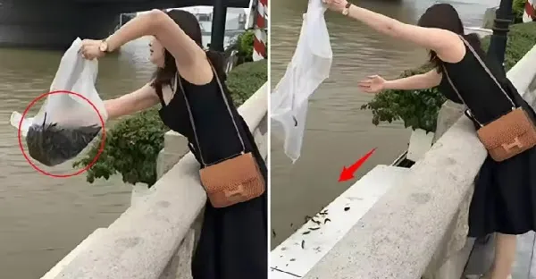 路邊看到一女子在河邊搞「放生」,黑乎乎一大袋,走進看清後:人在前面跑,魂在後面追!