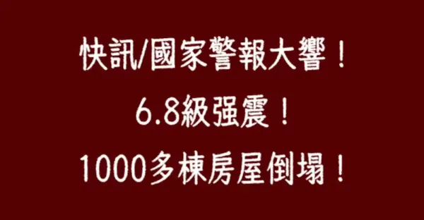 快訊/國家警報大響!6.8級強震!1000多棟房屋倒塌!