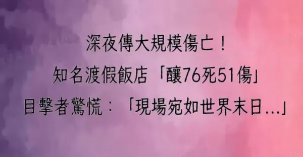 深夜傳大規模傷亡!知名渡假飯店「釀76死51傷」 目擊者驚慌:「現場宛如世界末日~」