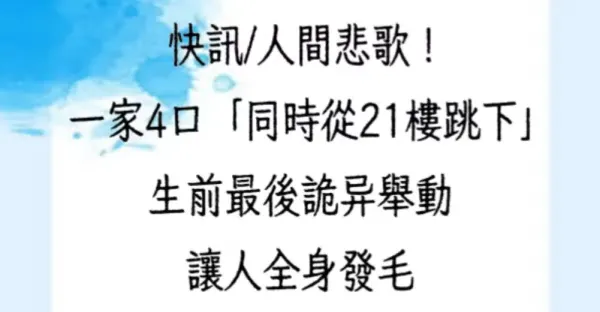 快訊/人間悲歌!一家4口「同時從21樓跳下」 生前最後「詭異舉動曝光」讓人全身發毛