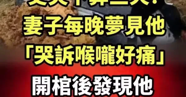 丈夫下葬三天❗妻子每晚夢見他,「哭訴喉嚨好痛」 開棺後發現他「嘴裡的東西」立馬報警了
