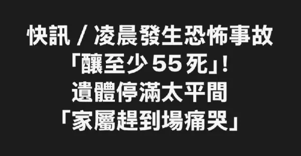 快訊/凌晨發生恐怖事故「釀至少55死」!遺體停滿太平間「家屬趕到場痛哭」