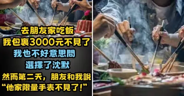 去朋友家吃飯,我包里3000元不見了,我也不好意思問,選擇了沉默,然而第二天,朋友和我說,「他家限量手錶不見了」