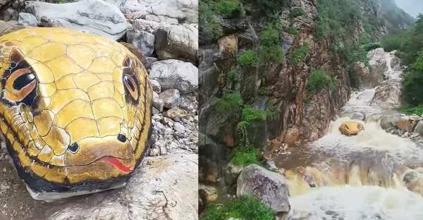 嚇爛!「超巨大黃金蟒蛇」從水面探頭而出 大票遊客一看心頭涼掉