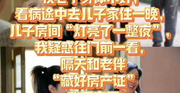 我老了身體不好,看病途中去兒子家住一晚,兒子房間「燈亮了一整夜」,我疑惑往門前一看,隔天和老伴「藏好房產證」心死地離開了