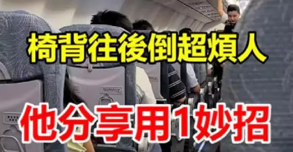 搭飛機遇到「前座乘客椅背往後倒」超煩人!他分享「用1妙招瞬間抵制對方」網友全贊翻:早知道多好~