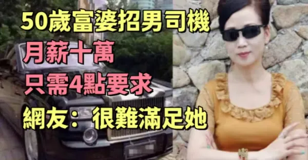 50歲富婆招男司機,月薪十萬隻需4點要求,網友:很難滿足她!