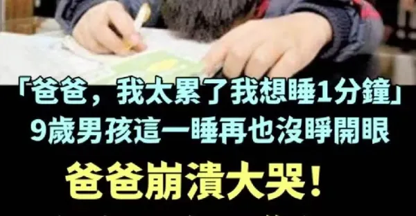 「爸爸,我太累了,我想睡1分鐘」9歲男孩這一睡再也沒睜開眼,爸爸崩潰大哭!網友:人間悲劇