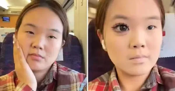 女生起晚捷運上趕妝,「妝前妝後」堪比換頭,旁邊乘客看呆:這手比美顏還強大