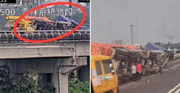 快訊/救我老公!國1南向雲林段砂石車翻傷亡不明,她驚收同位置「SOS簡訊」