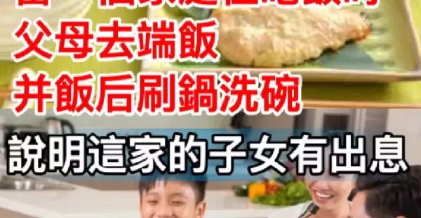 當一個家庭在吃飯時,父母去端飯並飯後刷鍋洗碗,說明這家的子女有出息