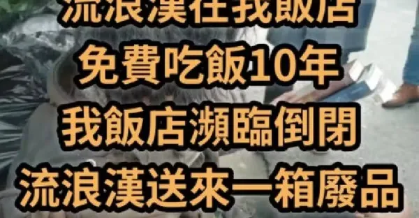 流浪漢在我飯店免費吃飯10年,我飯店瀕臨倒閉,流浪漢送來一箱廢品,我愣住了!