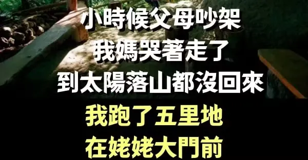 小時候父母吵架,我媽哭著走了,到太陽落山都沒有回來,我跑了五里地,在姥姥大門前看到的那一幕,讓我至今都無法忘懷。