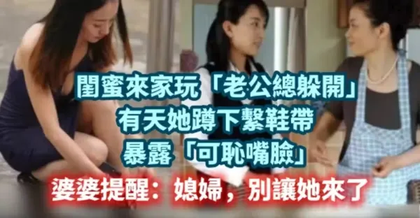 閨蜜來家玩「老公總躲開」!有天她蹲下繫鞋帶暴露「可恥嘴臉」 婆婆提醒:媳婦,別讓她來了!