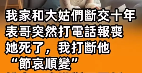 我家和大姑們斷交十年 表哥突然打電話報喪 她死了,我打斷他 「節哀順變」 說完,我掛斷了電話 回想起之前的事 我依然無法釋懷.....
