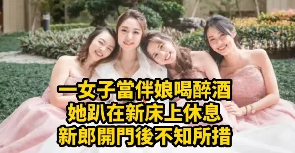 一女子當伴娘喝醉酒,她趴在新床上休息,新郎開門後不知所措